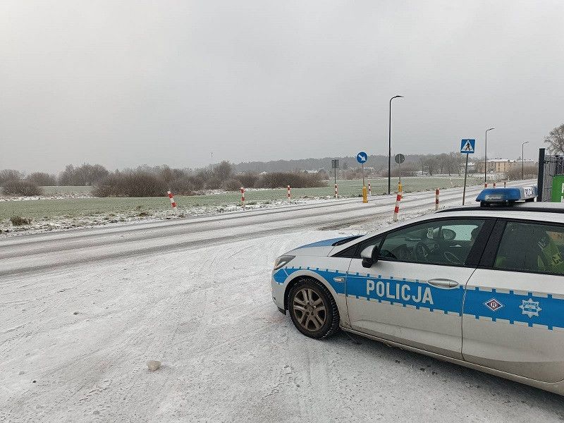 Spadek temperatury oraz opady śniegu i marznącego deszczu sprawiają, że drogi są mokre i śliskie. Policja w Lęborku apeluje o rozważną jazdę, dostosowanie prędkości, zachowanie odstępu i używanie elementów odblaskowych przez pieszych.